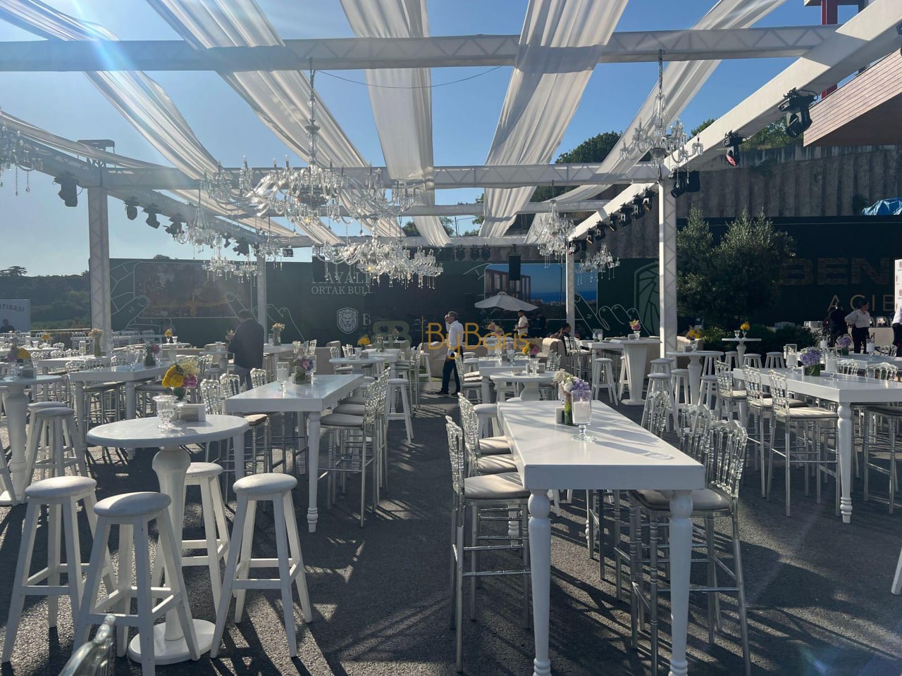 Şık Kokteyl Masaları & Süslemeler: Konseptinize özel hazırlanmış, modern ve zarif masalarla ortamı renklendiriyoruz.