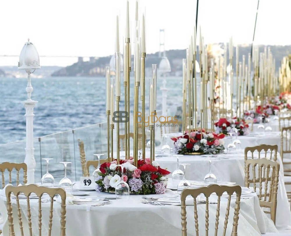 Lüks düğün süslemesi, her biri titizlikle seçilen dekoratif öğelerle tamamlanır. By Barış Organizasyon olarak, aşağıdaki hizmetlerle düğününüze değer katıyoruz: