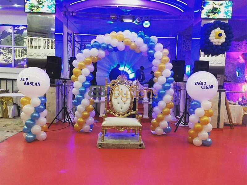 Balon Aranjmanları: Sünnet düğünlerinde balonlar sadece girişte değil, her alanda da kullanılabilir. Süsleme amacıyla balonlar masaların üzerinde, duvarlarda veya tavanda dekoratif unsurlar olarak yer alabilir. Barış Organizasyon, balonları farklı şekillerde kullanarak mekana renk ve hareket katacaktır.