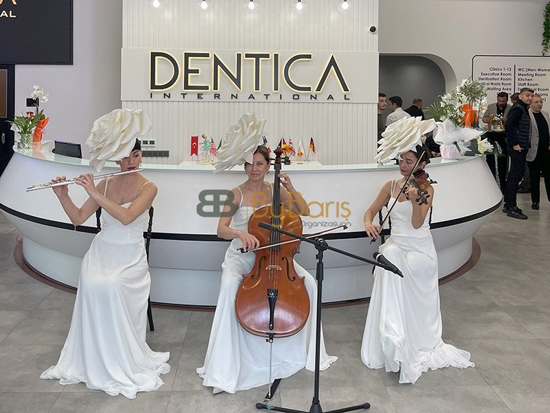 Güllü Trio Ekibi: Dentica International Ataköy Tower Şubesi'nin açılışında, özel bir atmosfer yaratmak amacıyla güllü trio ekibiyle etkinliği taçlandırdık. Güllü trio ekibimiz, hem görsel olarak mekâna zarif bir dokunuş kattı hem de enstrümantal performanslarıyla konukları büyüledi.