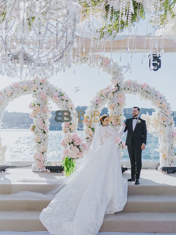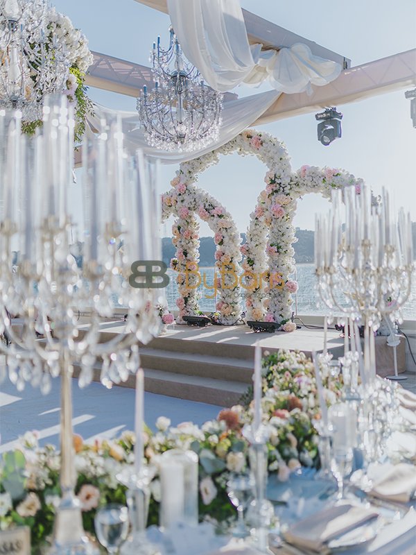By Barış Organizasyon, düğün konseptini baştan sona planlayarak tüm detayları organize etti. Ses, ışık, truss, masa sandalye dekorasyonu, masa üstü süslemeler, catering, fotoğraf ve klip çekimi, zaffe show ve diğer tüm hizmetler profesyonel ekip tarafından kusursuz şekilde hazırlandı.